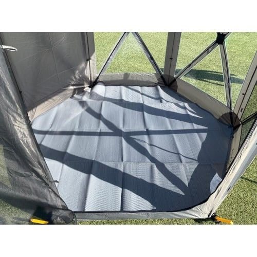 Formsydd matte som passer Inaca Pop-Up telt Mini Ø 225 cm. Mørkegrå vevet Polypropylen, kantsydd. Kvalitet: 320gr/kvm.